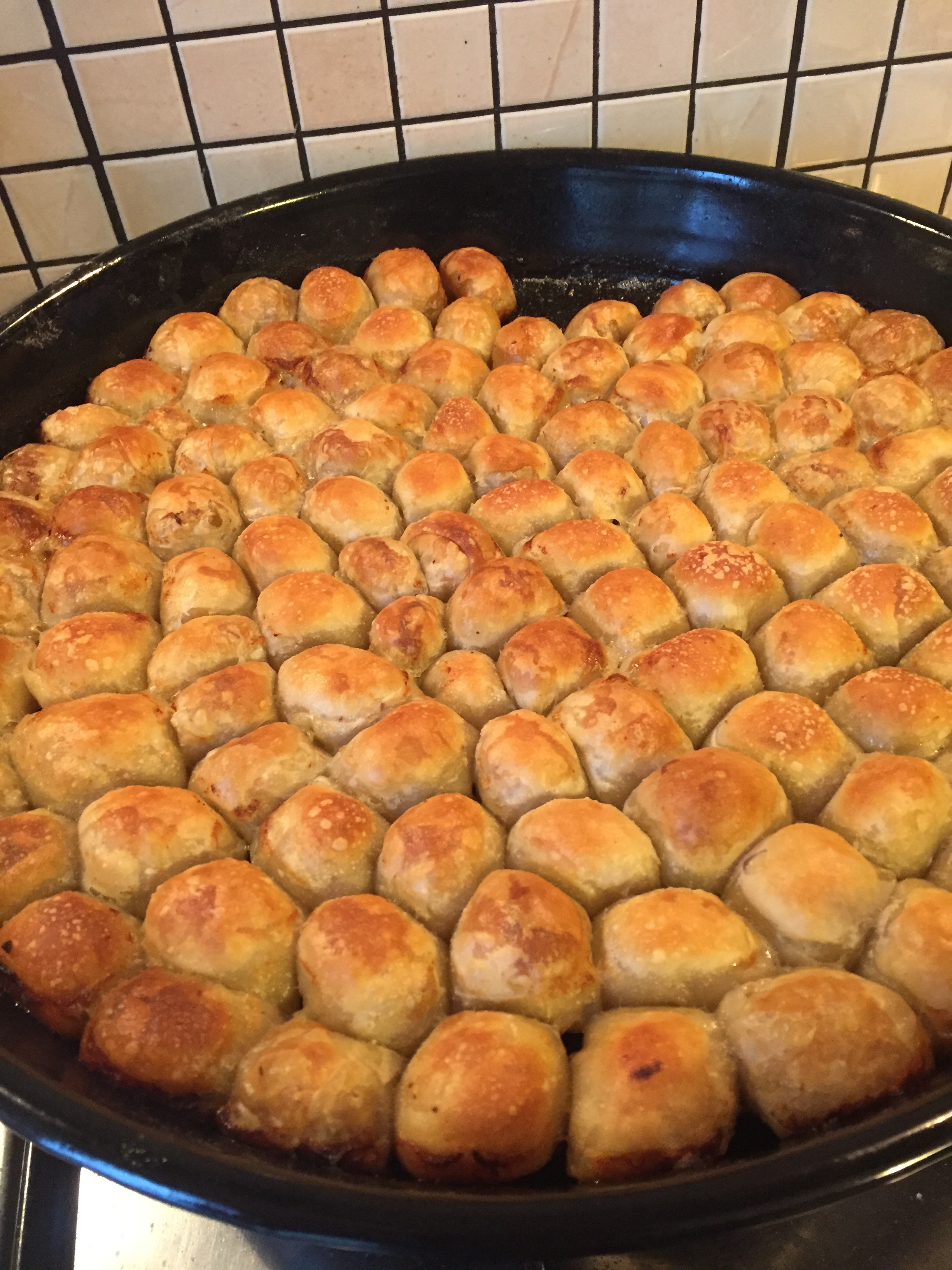- Tüm hamur ve harç bitinceye kadar bu işlemi yaptıktan sonra kalan yağı da üzerine sürüyoruz.